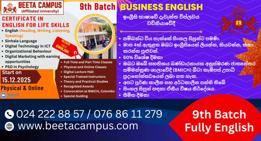 Welcome to Beeta Campus, your gateway to higher and professional education in Sri Lanka. As a leading Higher Education Institution, we are dedicated to providing educational opportunities to students.